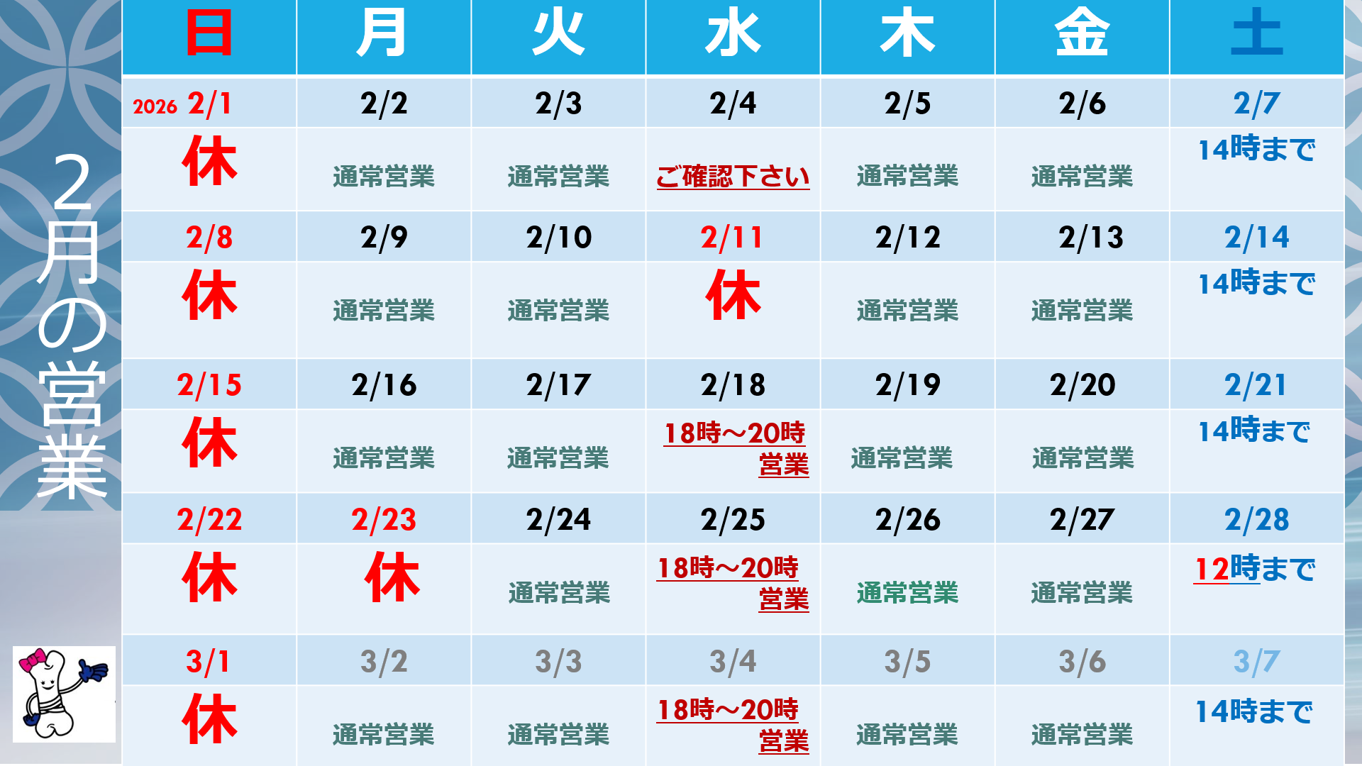 水曜日の営業について
